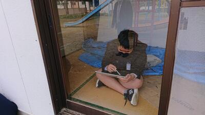 私が笑い話で甲斐先生に「旧校長住宅に、この前からブルーシートを敷いてもらっている上だけどみんなで靴のまま上がっているのを見るとかつて住んでいた人間としては胸がキュンとなる」と笑いながら言ったんです。笑い話で言ったんです。そうしてほしいとか言うニュアンスもないんだよと言いながら・・・。すると、その10分後にこの光景・・・。