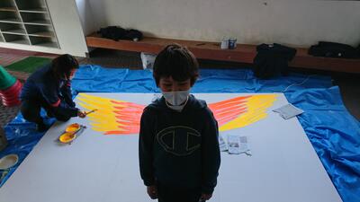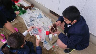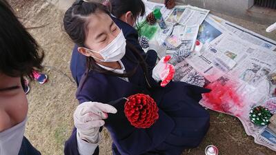 タブレットで映えるツバサを作成する彼は外で寒い中マツボックリに色をつけるみんなの羨望の的・・・。