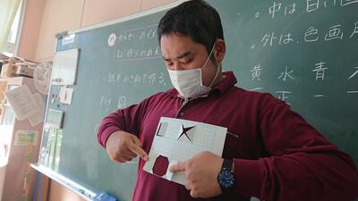 そしてそのころ、2年生は図工で、カッターを使い工作用紙を切り抜き、そこに開いた窓の中に装飾を施すという学習をしていました・・・。