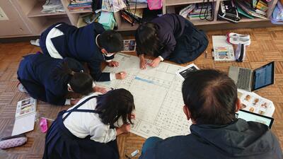 4年生は、勇志国際高校近くの入り江で伝馬船の体験を行いました。地域の方々のご協力をいただきながら、全員が艪をこいで舟を進める貴重な経験をしました。風が吹く中での操縦は容易ではなく、悪戦苦闘しながらも和船ならではの操船を体感することができました。 ※伝馬船(てんません)とは、日本で使われた木造の小型和船で、本船と岸の間で荷物や人を運ぶために用いられた船です。