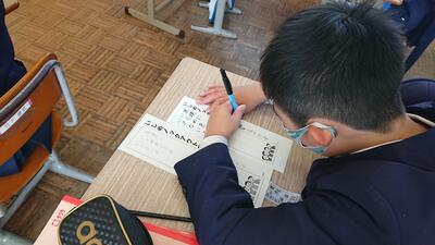 今日の児童集会では、体育委員会の発表と文化展の表彰が行われました。 体育委員会からは、各学年ごとの体力課題が提示され、それに応じたおすすめの運動が紹介されました。 限られた時間の中で練習を重ねた成果がよく伝わる、工夫された発表でした。 続いて、文化展の表彰がありました。毛筆や硬筆など、優秀賞に輝いた作品は全部で12点。 賞に選ばれなかった児童も、それぞれが心を込めて、自分だけのとっておきの作品を完成させていました。