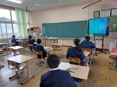 5.6時間目、本校4年生が水俣第二小学校とオンライン交流会を行いました。自己紹介やクイズを通して、楽しいひとときを過ごすことができました。水俣から水の供給を受けている御所浦にとって、今回の交流はたいへん感慨深く、社会科の学習にもつながる貴重な機会となりました。今後のさらなる展開が楽しみです。水俣第二小学校の皆様には、温かいご理解とご協力をいただき、心より感謝申し上げます。