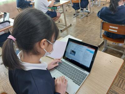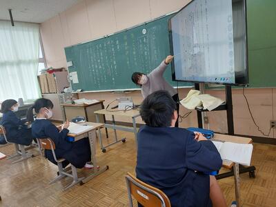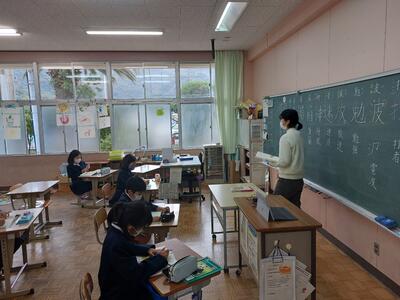 今日は、天草市教育委員会の先生、御所浦中学校の先生、東京からの学生さん(キャラバン隊)が来校されました。2時間目の5年生の国語の授業では、タブレット端末に自分の考えを残しながら、話し合いが行われました。児童は、緊張しながらも話し合いが少しずつ活発になっていく姿が見られました。緊張の中での授業、これも大切な経験です。
