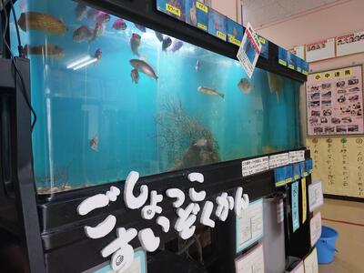 朝から子どもたちに囲まれる「ごしょっこ水族館」。今日も「わあ、きれいになってる!」と声をあげながら、1・2年生の子どもたちが水槽をのぞき込んでいました。昨日の放課後、保護者の方が掃除と海水の入れ替えをしてくださったおかげです。水槽の中では、鯛の稚魚がすくすくと成長しています。