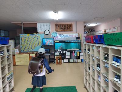 朝から子どもたちに囲まれる「ごしょっこ水族館」。今日も「わあ、きれいになってる!」と声をあげながら、1・2年生の子どもたちが水槽をのぞき込んでいました。昨日の放課後、保護者の方が掃除と海水の入れ替えをしてくださったおかげです。水槽の中では、鯛の稚魚がすくすくと成長しています。