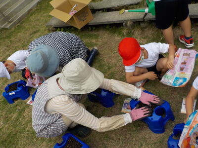 地域のみなさんが手伝いに来ていただき、子どもたちも「大きくな~れ」と丁寧に植えていました。