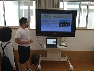 のびのび学級では「発表タイム」です。天草の冬の楽しみ方について自分で調べて、スライドに整理して発表をしてくれました。その後感想交流で本渡諏訪神社についての思い出を参観者で話しました。ほのぼのとした時間でした。