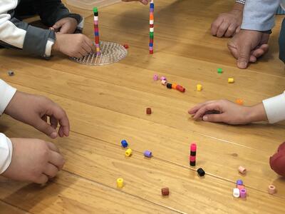 お互いに、「こうだよ」「金具をはめるって書いてあるよ」など話し合いながら実験キットを作っていました。
