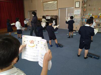 さて、今日は1年生の音楽に中学校の先生が指導に来てくださいました。