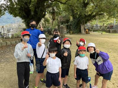 7月23日(水)、御所浦小中合同でボランティア活動を実施しました。中学校の生徒さん方がリードしながら、自分たちの地区で清掃活動に取り組みました。お菓子の袋やペットボトルなどのゴミを拾い、御所浦の環境をさらにきれいにしてくれた子どもたちです。ちなみに、写真の奥に見えるのは八代海です。遠くには九州山地も、うっすらと姿を見せていました。美しい景色と捨てられたゴミの対照が、なんとも印象的でした。