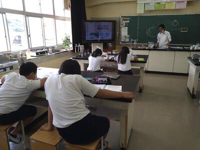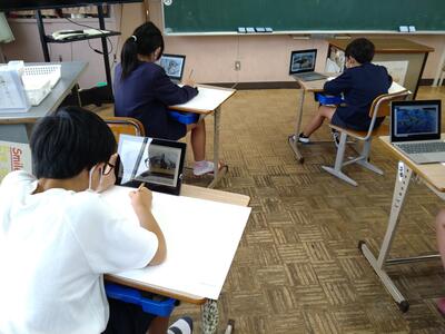 今日は、天草市教育委員会の先生、御所浦中学校の先生、東京からの学生さん(キャラバン隊)が来校されました。2時間目の5年生の国語の授業では、タブレット端末に自分の考えを残しながら、話し合いが行われました。児童は、緊張しながらも話し合いが少しずつ活発になっていく姿が見られました。緊張の中での授業、これも大切な経験です。