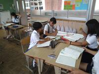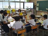 今日は、天草市教育委員会の先生、御所浦中学校の先生、東京からの学生さん(キャラバン隊)が来校されました。2時間目の5年生の国語の授業では、タブレット端末に自分の考えを残しながら、話し合いが行われました。児童は、緊張しながらも話し合いが少しずつ活発になっていく姿が見られました。緊張の中での授業、これも大切な経験です。