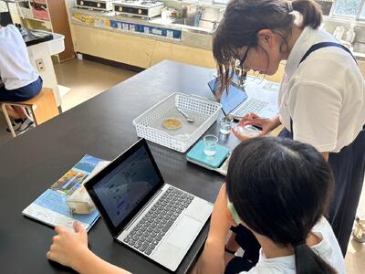 「あるきまった水の量に食塩はどのくらい溶けるのだろうか?」予想を立てて、実験方法の見通しをもって実験に取り掛かります。実験結果の撮影などもして、自分の予想がどうだったのか、他の友達の考えや実験結果も含めて考察していきます。