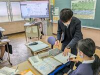 今日は、天草市教育委員会の先生、御所浦中学校の先生、東京からの学生さん(キャラバン隊)が来校されました。2時間目の5年生の国語の授業では、タブレット端末に自分の考えを残しながら、話し合いが行われました。児童は、緊張しながらも話し合いが少しずつ活発になっていく姿が見られました。緊張の中での授業、これも大切な経験です。
