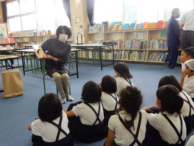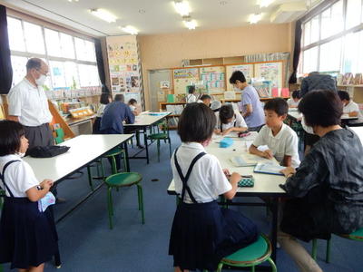 そしてその図書室でこんなシーンがありました。ちょうど私が歩いている近くで、いすが落ちました。御所浦小の図書室のいすは、テーブルの下のフォルダにかけるような収納になっているので、収納している椅子の向かいに座っている子の足があたると落ちることがあります。 私の目の前に落ちたいすを私が拾おうとしたタイミングと、1つ向こうのテーブルで勉強していた3年生がそのいすを拾い上げに来たタイミングが一緒でした。さりげなくすごいと思いませんか。その子が落としたわけでもないいすを遠くから拾いに来る感性・・・。いやいや御所浦小にいると心が洗われるようなステキなシーンに出合うことができます・・・。まったくもって幸せ・・・。子どもたちのおかげで、私の心が今も成長している・・・。