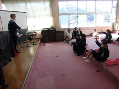 本日、東京都の明星大学の学生さん8名が、本校の教育活動の視察訪問に来校されました。皆さんは、へき地教育について自主的に学習をされている方々で、高い志を持たれています。歓迎会では、はつらつとした学生さんの姿に、子どもたちの目も輝いていました。3日間という短い期間ですが、御所浦小の子どもたちとの交流を満喫してほしいと思います。