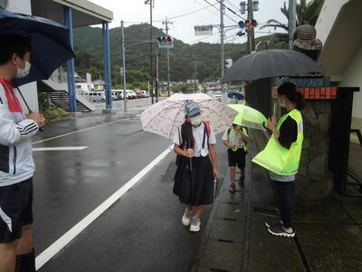 7月23日(水)、御所浦小中合同でボランティア活動を実施しました。中学校の生徒さん方がリードしながら、自分たちの地区で清掃活動に取り組みました。お菓子の袋やペットボトルなどのゴミを拾い、御所浦の環境をさらにきれいにしてくれた子どもたちです。ちなみに、写真の奥に見えるのは八代海です。遠くには九州山地も、うっすらと姿を見せていました。美しい景色と捨てられたゴミの対照が、なんとも印象的でした。