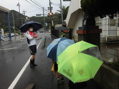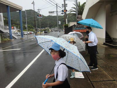 その後、雨の中、2年生が傘をさしてあいさつ運動に来てくれました・・・。