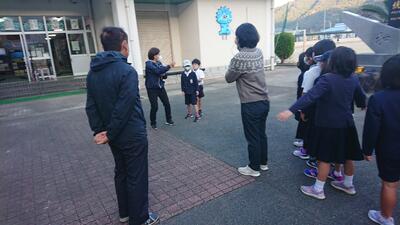 朝から、あいさつボランティア、原田なわとび団と元気な子どもたちです・・・。