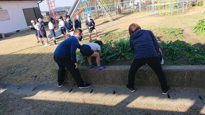 今日の昼休み、大谷選手からいただいたグローブをはめて、担任の先生を相手にキャッチボールをする児童の姿を発見!大谷選手の二刀流復帰の次の日に、こんな光景を御所浦小学校運動場で見ることができるとは、何とも幸せです。ボールがグローブにおさまったときの「パシッ」という音が、心地よく感じられた昼休みでした。