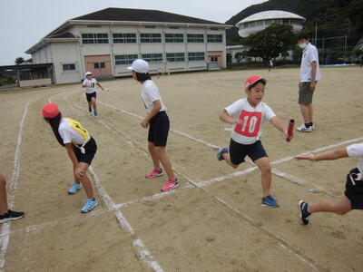 御所浦音頭の後は、小中全員リレーの小学校の部分・・・。