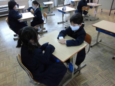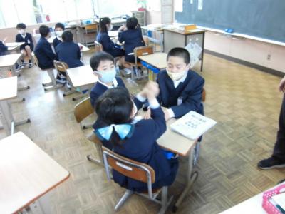 ”3人に2枚しか配られなかった最前列の子は、うしろに2枚渡しました”