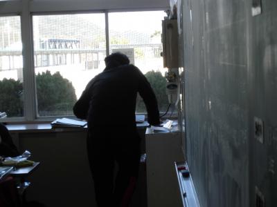浦田先生は寒い中ですが春待つ花壇の整備をしてくれています・・・。
