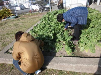 午後は荒木様に来ていただき、生活科の野菜畑のお世話をしていただきました・・・。