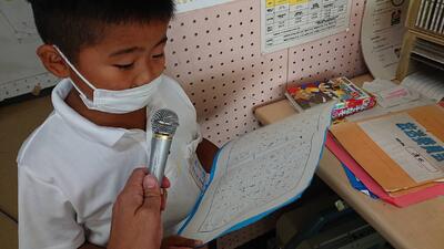 三つ目は一ばんがんばりたいかん字コンクールです。りゆうは、たくさんれんしゅうして、むずかしいかん字をおぼえたいからです。ていねいに書いて、えらばれるようにがんばりたいです。」