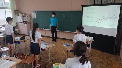 6年社会TT(ティームティーチング)で中学校の平山先生に来ていただきました。