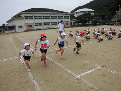 御所浦音頭の後は、小中全員リレーの小学校の部分・・・。
