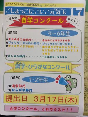 給食時間は有馬先生から最後の自学コンクールの告知がありました。
