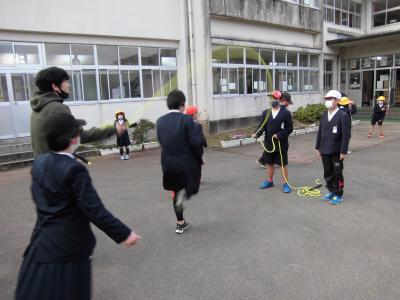 6年生と4年生がながなわクラスチャレンジの練習を始めていますよ・・・!