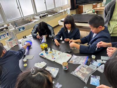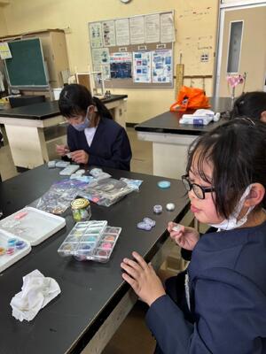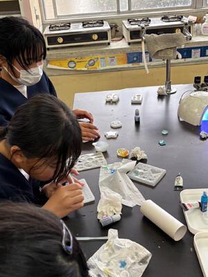 家庭科クラブはUVレジンを使ってアクセサリー?づくりです。
