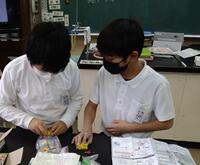 お互いに、「こうだよ」「金具をはめるって書いてあるよ」など話し合いながら実験キットを作っていました。