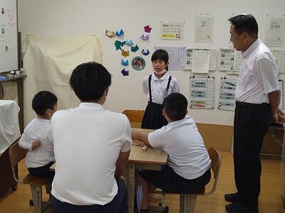本日の1時間目に東京学芸大学の堀田先生や登本先生他、8名の関係者の方に授業を見ていただきました。いつもと違う雰囲気に子どもたちもどきどきしたことでしょう。