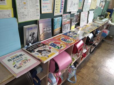 5年生教室には、教科や総合の時間に活用する福祉や環境に関する本が並べてあります。