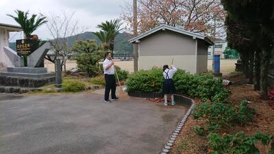 御所浦小の朝はいつものようにボランティアから始まります・・・。