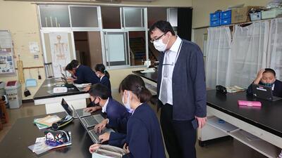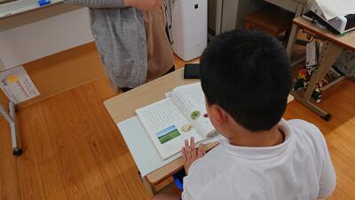 今日は、天草市教育委員会の先生、御所浦中学校の先生、東京からの学生さん(キャラバン隊)が来校されました。2時間目の5年生の国語の授業では、タブレット端末に自分の考えを残しながら、話し合いが行われました。児童は、緊張しながらも話し合いが少しずつ活発になっていく姿が見られました。緊張の中での授業、これも大切な経験です。