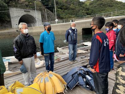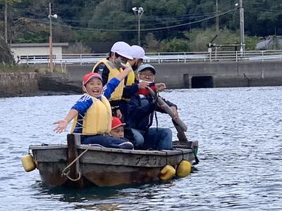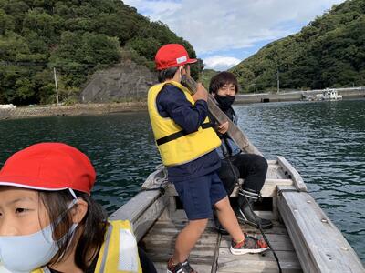 4年生は、勇志国際高校近くの入り江で伝馬船の体験を行いました。地域の方々のご協力をいただきながら、全員が艪をこいで舟を進める貴重な経験をしました。風が吹く中での操縦は容易ではなく、悪戦苦闘しながらも和船ならではの操船を体感することができました。 ※伝馬船(てんません)とは、日本で使われた木造の小型和船で、本船と岸の間で荷物や人を運ぶために用いられた船です。