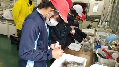 朝から子どもたちに囲まれる「ごしょっこ水族館」。今日も「わあ、きれいになってる!」と声をあげながら、1・2年生の子どもたちが水槽をのぞき込んでいました。昨日の放課後、保護者の方が掃除と海水の入れ替えをしてくださったおかげです。水槽の中では、鯛の稚魚がすくすくと成長しています。