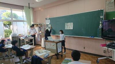 今日は、天草市教育委員会の先生、御所浦中学校の先生、東京からの学生さん(キャラバン隊)が来校されました。2時間目の5年生の国語の授業では、タブレット端末に自分の考えを残しながら、話し合いが行われました。児童は、緊張しながらも話し合いが少しずつ活発になっていく姿が見られました。緊張の中での授業、これも大切な経験です。