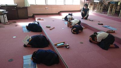 今回授業中で、音楽室、体育館では、それぞれ工夫した身の守り方をしていました。