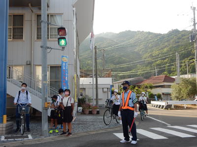 今日も交通安全のため、正門横の交差点に立っていただいていました。