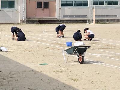 こちらは、昼休みの紅団応援団練習。どちらの団も団長を中心に自分たちで考えた行動ができています。すばらしい!