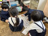 すごろくを準備。どうすれば新入学児童が楽しめるかよく考えています。