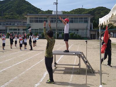 運動会の全体練習は、開会式の練習から。「始めの言葉」の様子です。