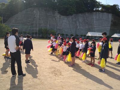 今日は、開会式・閉会式の流れの練習となります。今年度は、昨年までと違い観客の皆さんの制限は設けず、地域の皆さんにもオープンにした初めての合同運動会となります。