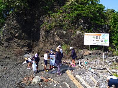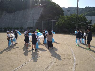 7月23日(水)、御所浦小中合同でボランティア活動を実施しました。中学校の生徒さん方がリードしながら、自分たちの地区で清掃活動に取り組みました。お菓子の袋やペットボトルなどのゴミを拾い、御所浦の環境をさらにきれいにしてくれた子どもたちです。ちなみに、写真の奥に見えるのは八代海です。遠くには九州山地も、うっすらと姿を見せていました。美しい景色と捨てられたゴミの対照が、なんとも印象的でした。