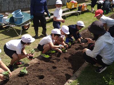 2年生はビニルポットから苗を出して植えるのももう慣れたものです。